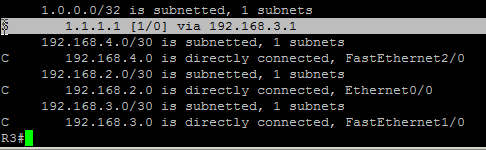 R3(config)#ip route 1.1.1.1 255.255.255.255 192.168.3.1